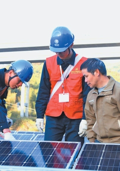 國(guó)網(wǎng)福建省電力公司員工幫助用戶檢查光伏發(fā)電板。鄭 極攝