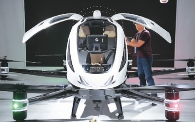 圖為廣交會新設(shè)置的新能源及智能網(wǎng)聯(lián)汽車展區(qū)內(nèi),采購商在了解正在展示的飛行器產(chǎn)品。新華社記者 鄧 華攝