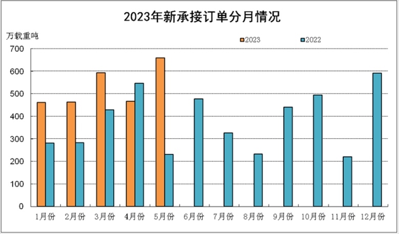 2023年1-5月新承接訂單分月統(tǒng)計。 來源:中國船舶工業(yè)行業(yè)協(xié)會