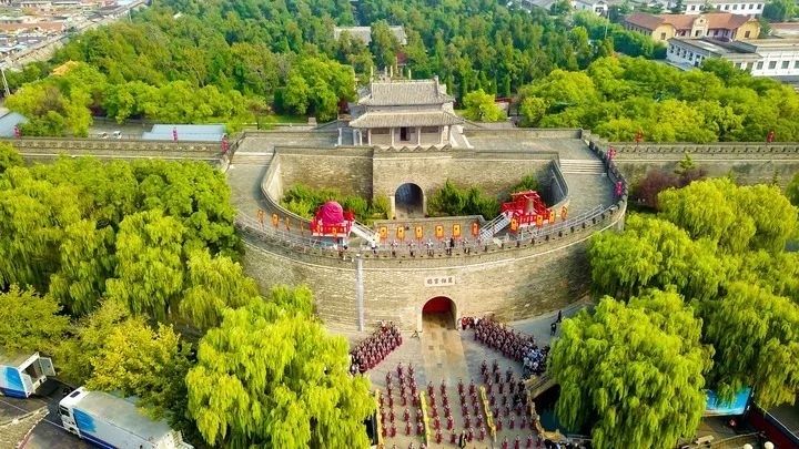 孔廟萬仞宮墻(無人機(jī)照片)。新華社記者 郭緒雷 攝