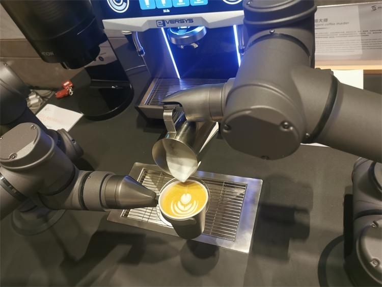 磨粉、過濾、注水、沖泡、拉花……短短75秒,智能咖啡大師就憑借著兩只靈活又穩(wěn)重的機(jī)械臂,制作出一杯帶拉花圖案的香濃咖啡?!拔覀兊臋C(jī)械臂拉花都是由咖啡大師調(diào)教的,很精準(zhǔn),如果說有時候人可能存在失誤的情況,那么機(jī)器人不會?!卞鄄┥綎|智能機(jī)器人有限公司調(diào)試工程師崔玉坤告訴記者,這臺機(jī)器目前可以做出4個品類6個花型的拉花效果,后期可以支持在線升級和擴(kuò)充。