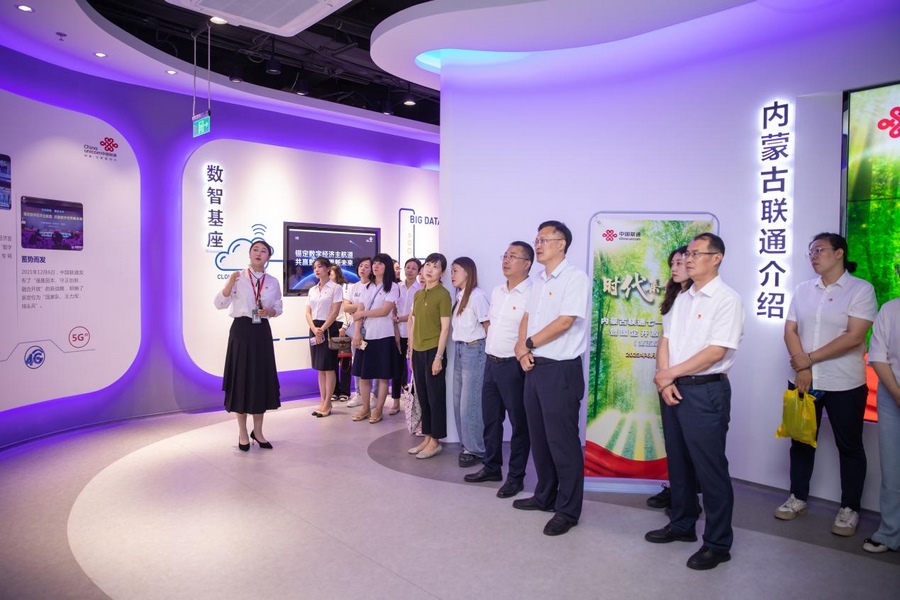參會嘉賓們參觀了內蒙古聯(lián)通數(shù)字經濟展廳,通過對大國央企、數(shù)智基座、互動專區(qū)、數(shù)智產業(yè)、城市云圖、數(shù)智未來六大板塊的近距離參觀,了解了內蒙古聯(lián)通近年來在“數(shù)字經濟”“數(shù)字政治”“數(shù)字文化”“數(shù)字社會”以及“數(shù)字生態(tài)”領域的科技創(chuàng)新成果和高品質服務能力。