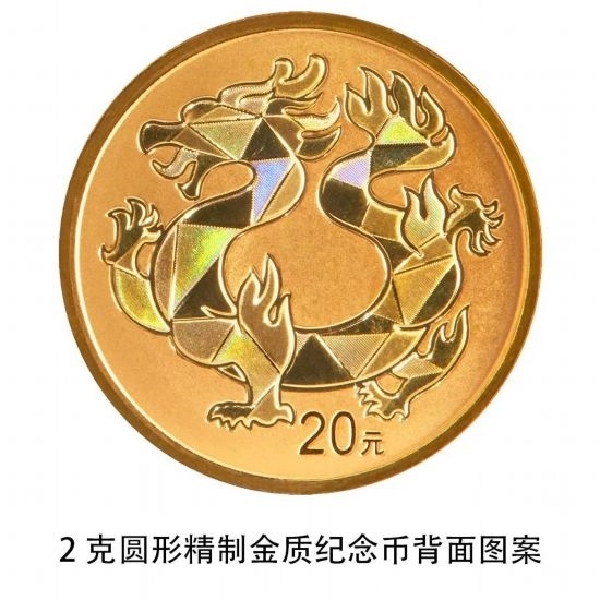 2克圓形金質(zhì)紀(jì)念幣背面圖案為裝飾龍?jiān)煨?,并刊面額。
