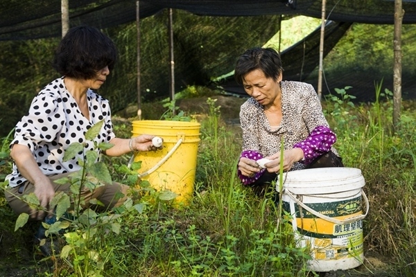 種植戶把采摘好的竹蓀分批裝回加工基地。