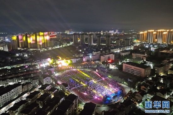 航拍下的萬安鄉(xiāng)村音樂會(huì)現(xiàn)場(chǎng)。新華網(wǎng)發(fā) 邱哲 攝