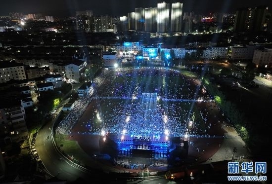 江西省吉安市萬安縣城北體育公園,鄉(xiāng)村音樂會(huì)現(xiàn)場(chǎng)人潮涌動(dòng)。新華網(wǎng)發(fā) 邱哲 攝