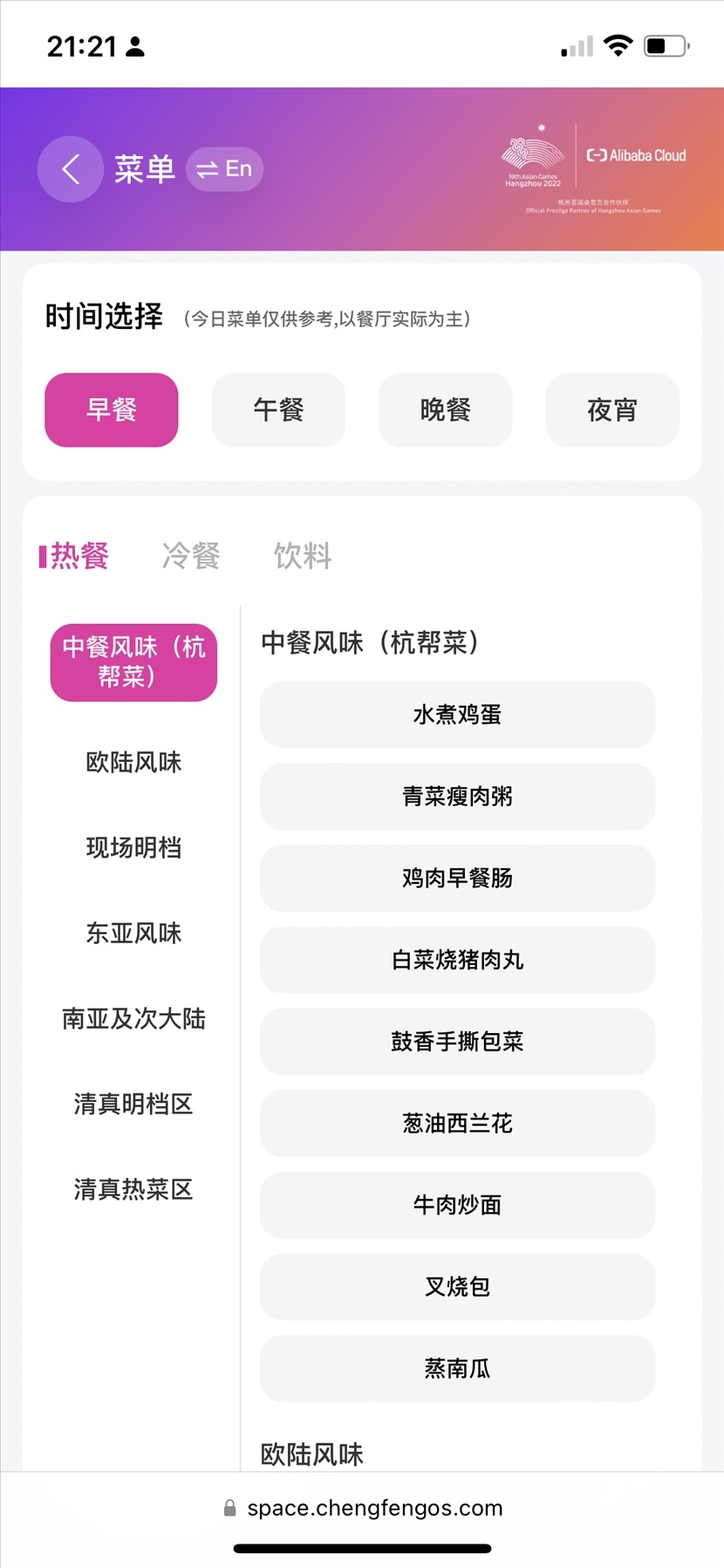 老鴨蘿卜湯、宋嫂魚羹、雪菜蒸鱸魚、東坡肉、京蔥爆牛肉……打開云上亞運(yùn)村的 “云上通”小程序,各色餐食便可隨意選擇預(yù)約。不僅傳統(tǒng)中餐,“歐陸風(fēng)味”“東亞風(fēng)味”“東南亞及次大陸”各式特色餐食,也可根據(jù)個(gè)人喜好和時(shí)間安排進(jìn)行性選擇。同時(shí),還可以隨時(shí)查看餐廳的實(shí)時(shí)人流量。