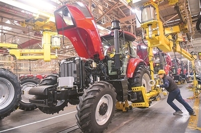 新年伊始,工人在河南省洛陽市一家拖拉機(jī)生產(chǎn)企業(yè)車間工作。