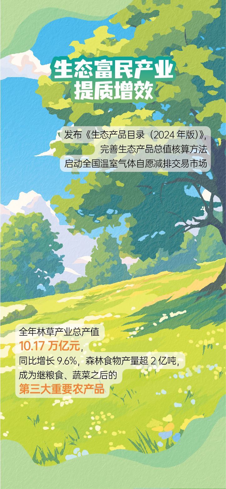 “我們持續(xù)深化改革,推進生態(tài)富民產業(yè)提質增效?!睆埨髡f,全年林草產業(yè)總產值10.17萬億元,同比增長9.6%,森林食物產量超2億噸,成為繼糧食、蔬菜之后的第三大重要農產品。