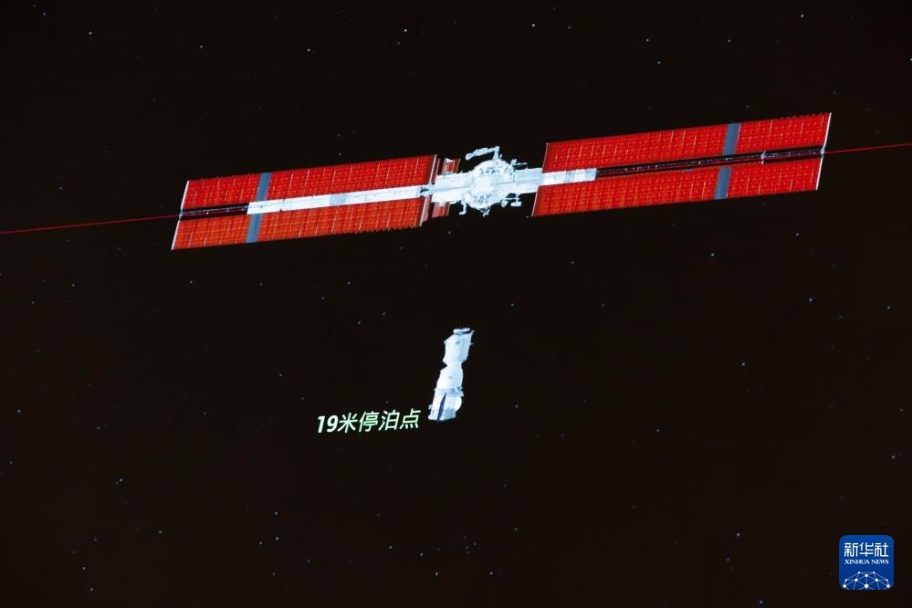 4月24日在北京航天飛行控制中心拍攝的神舟二十號載人飛船成功對接空間站天和核心艙的模擬畫面。新華社記者 金立旺 攝
