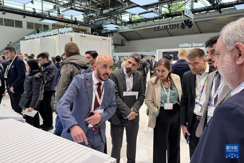 5月7日,參觀者在德國(guó)慕尼黑舉行的2025年歐洲國(guó)際太陽(yáng)能展上參觀華為展區(qū)(手機(jī)照片)。新華社記者 黃燕 攝