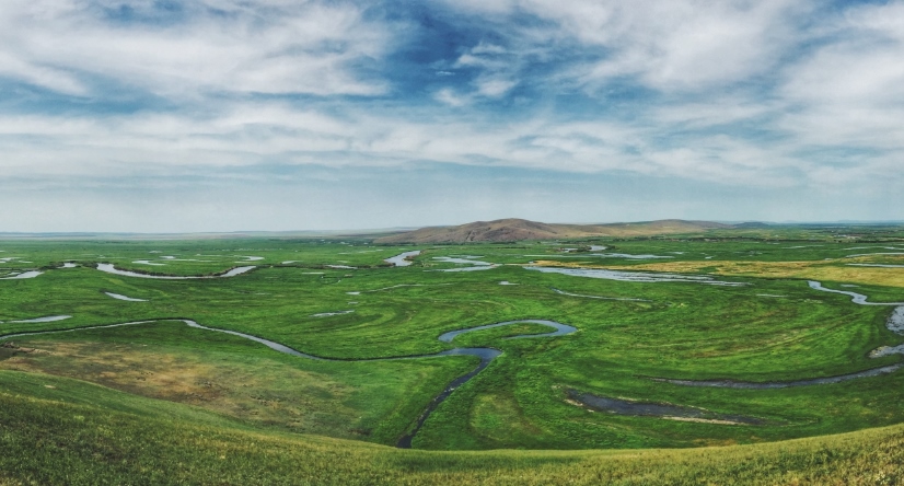 下午前往莫日格勒草原,莫日格勒河發(fā)源于大興安嶺西麓,流經(jīng)呼倫貝爾大草原,全長(zhǎng)290多公里,屬額爾古納河水系。其水勢(shì)平緩?fù)鹑舸蟛菰挠駧Ш万札?,被老舍先生贊嘆為當(dāng)之無(wú)愧的“天下第一曲水”。在這里我們最后享受一下草原的遼闊后,就可以啟程返回海拉爾,結(jié)束這難忘的七天邊境之旅了。你可能會(huì)在某一天的睡夢(mèng)里再次回到這片草原,無(wú)論何時(shí)這片草原都在這里等著你的再次到來(lái)。
