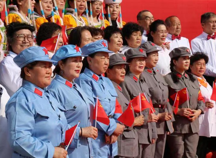 4月9日,由中共呼和浩特市委宣傳部、呼和浩特市文化旅游廣電局共同主辦的“永遠(yuǎn)跟黨走”——慶祝中國共產(chǎn)黨成立100周年呼和浩特市“大家唱”合唱節(jié)暨廣場舞展演活動在首府青城公園舉行。此項活動是“永遠(yuǎn)跟黨走”—慶祝中國共產(chǎn)黨成立100周年群眾性文化活動的一項重要內(nèi)容,也是呼和浩特市文化旅游廣電局黨史學(xué)習(xí)教育活動“為民辦實(shí)事”的重要文化舉措?;顒蝇F(xiàn)場由100人合唱團(tuán)表演曲目《歌唱祖國》、《社會主義好》、《沒有共產(chǎn)黨就沒有新中國》,100人展演廣場舞《我和我的祖國》、《點(diǎn)贊新時代》、《站在草原望北京》?,F(xiàn)場氣氛熱烈,廣大市民們揮舞著國旗,紛紛參與到活動中,凝聚起內(nèi)蒙古各族人民守望相助,同心向黨的強(qiáng)大精神力量,凝聚起中華兒女同心共筑中國夢的磅礴力量。