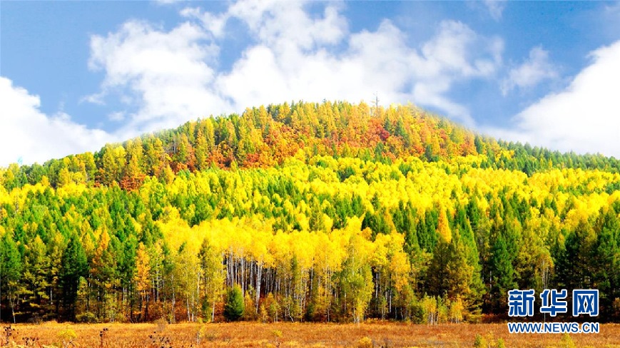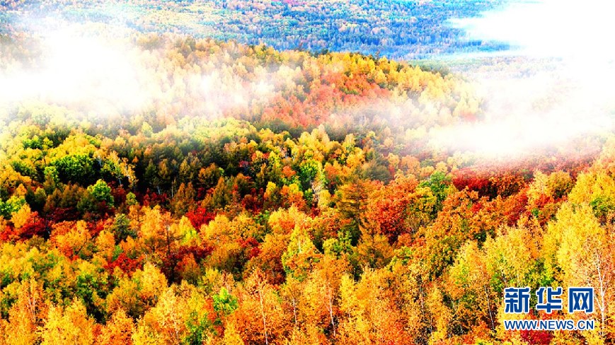 松樹林、白樺林、柞樹林和一片片混交林“染”成不同色彩,茫茫林海宛若一幅匠心獨(dú)運(yùn)的繽紛畫卷。(9月28日攝)新華網(wǎng)發(fā)(欒維敬 攝)
