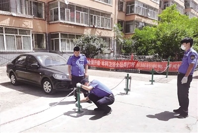 當日,記者來到該小區(qū)看到,一些住戶在公共區(qū)域私自打地樁,用鐵鏈圈出簡易的“私人停車場”,占地100多平方米。居民劉先生告訴記者,小區(qū)內(nèi)的公共停車位本來就緊張,可就在幾個月前,突然有人私自安了地樁連起了鎖鏈,建了個“私人停車場”,占用的全是小區(qū)公共用地。居民多次找圈地的住戶溝通,要求他們拆除,可對方態(tài)度惡劣,拒不拆除。