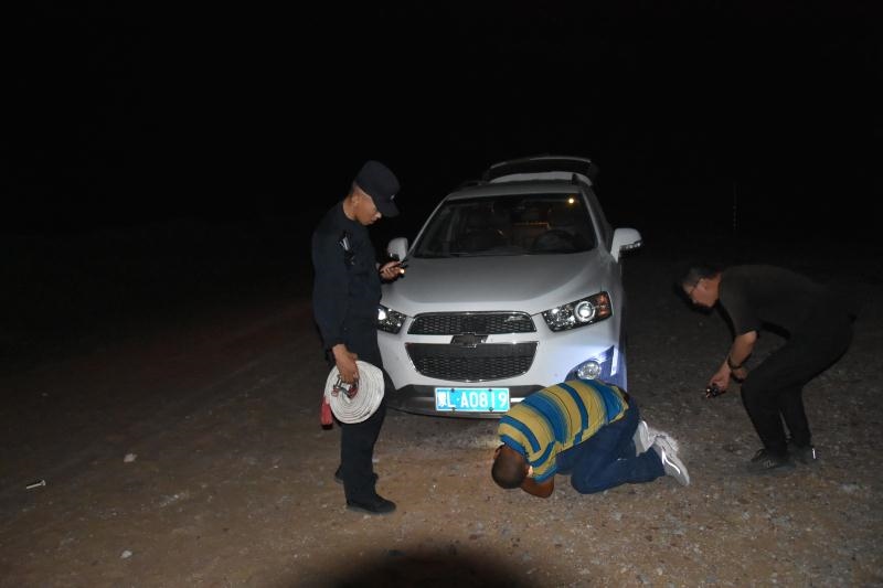 正當(dāng)二人漸漸失去希望的時(shí)候,當(dāng)晚10點(diǎn)10分,遠(yuǎn)處一道燈光閃過(guò),原來(lái),阿拉善邊境管理支隊(duì)溫圖高勒邊境派出所民警下鄉(xiāng)走訪正好路過(guò)。得知二人情況后,民警立即展開(kāi)救援,一路迅速找出隨身攜帶的干糧、礦泉水為二人補(bǔ)充體力,一路找出牽引繩對(duì)被困車(chē)輛開(kāi)展救援,經(jīng)過(guò)6個(gè)小時(shí)的拖拽,終于在凌晨4點(diǎn)將兩名群眾安全帶到了派出所。