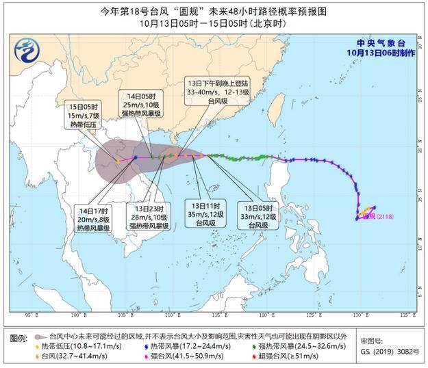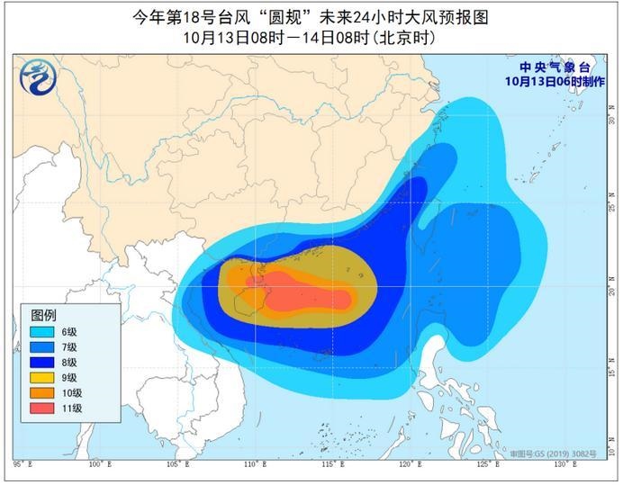 大風(fēng)預(yù)報:13日08時至14日08時,東海西部和南部、臺灣以東洋面、臺灣海峽、巴士海峽、南海中部和北部、北部灣、瓊州海峽、西沙群島、中沙群島和黃巖島附近海域,以及浙江沿海、福建沿海、廣東沿海、廣西沿海和海南島及其沿海將有6-8級、陣風(fēng)9-10級的大風(fēng),其中南海西北部、瓊州海峽、北部灣、廣東西部沿海及雷州半島、海南島及其沿海等地的部分海域或地區(qū)的風(fēng)力可達(dá)9-11級、陣風(fēng)11-13級,“圓規(guī)”中心經(jīng)過的附近海域或地區(qū)的風(fēng)力有12-13級,陣風(fēng)可達(dá)14-16級。