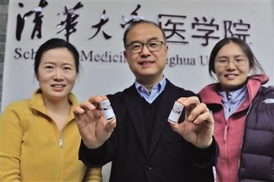 12月9日,清華大學(xué)醫(yī)學(xué)院,張林琦教授(中)和團(tuán)隊(duì)展示我國首款抗新冠病毒特效藥。新京報(bào)記者 浦峰 攝