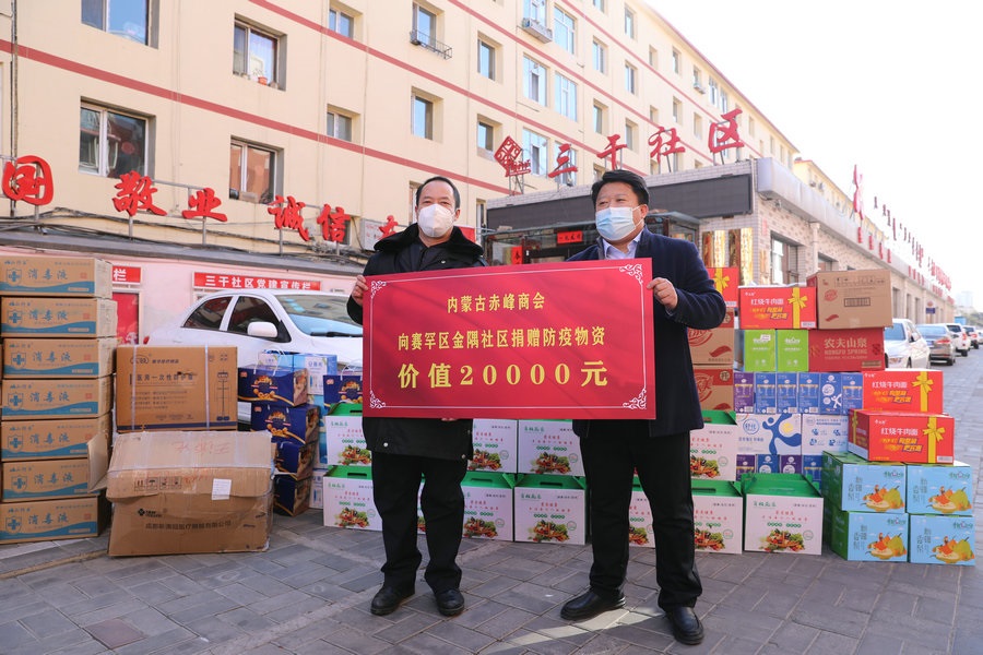 自疫情發(fā)生以來,內(nèi)蒙古赤峰商會慰問了呼和浩特市公安局賽罕區(qū)分局昭烏達路派出所,向抗疫一線公安民警表達慰問,并為他們送去第一批價值1萬元的抗疫物資;商會執(zhí)行會長張學春向新城區(qū)城市管理局捐贈5萬元防疫物資,用于一線疫情防控;商會副會長單位內(nèi)蒙古乾碩防水工程有限公司分別向呼和浩特市4個社區(qū)2個衛(wèi)生院捐贈了價值10萬元的防疫物資及生活必需品;商會聯(lián)合副秘書長單位蒙影影業(yè),走進玉泉區(qū)清泉街社區(qū),慰問抗疫一線工作人員,并為他們送去價值5000元的生活物資;商會聯(lián)合副會長單位友鵬實業(yè)集團,向回民區(qū)大慶路小學、伊利健康谷、東庫街社區(qū)、呼和浩特職業(yè)學院等防控一線捐贈價值10萬元的防疫物資。