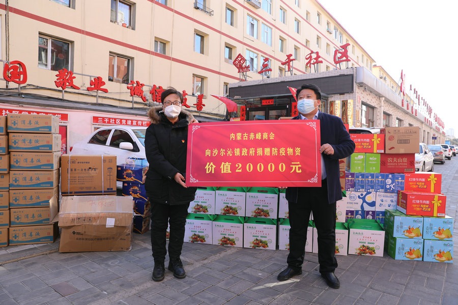 北疆新聞網(wǎng)、北疆新聞APP、北疆云消息(記者 張楊)2月26日下午,由呼和浩特市政協(xié)、呼和浩特市政協(xié)文化文史和學習委員會倡議,內(nèi)蒙古赤峰商會發(fā)起的抗疫物資捐贈,在呼和浩特市賽罕區(qū)烏蘭察布街道辦事處三干社區(qū)舉行。內(nèi)蒙古赤峰商會攜會員企業(yè),向呼和浩特市賽罕區(qū)金隅社區(qū)、錦泰榕城社區(qū)、三干社區(qū)和沙爾沁鎮(zhèn)政府捐贈了價值10萬元的抗疫急需物資,助力呼和浩特市一線抗疫。