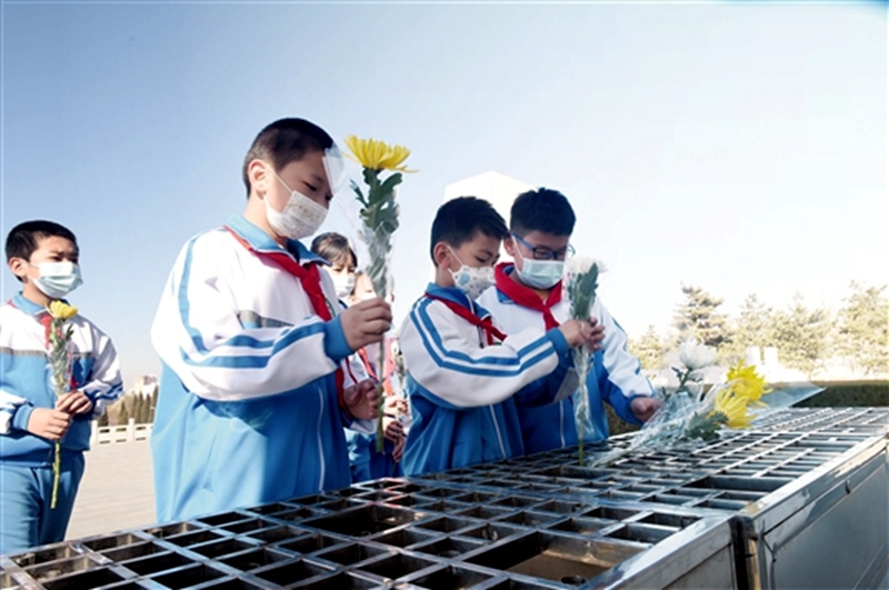 4月3日,在清明節(jié)到來之際,包頭市青山區(qū)一機(jī)三小的少先隊員自發(fā)來到井坪公園烈士紀(jì)念廣場,向革命烈士敬獻(xiàn)鮮花,聆聽革命先烈的光輝事跡,弘揚革命精神,傳承紅色基因,汲取前行力量,爭做新時代好少年。(記者 張富博)