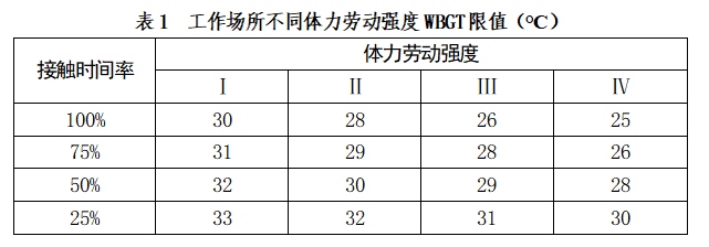 工作場(chǎng)所濕球黑球溫度(WBGT)指數(shù)職業(yè)接觸限值
