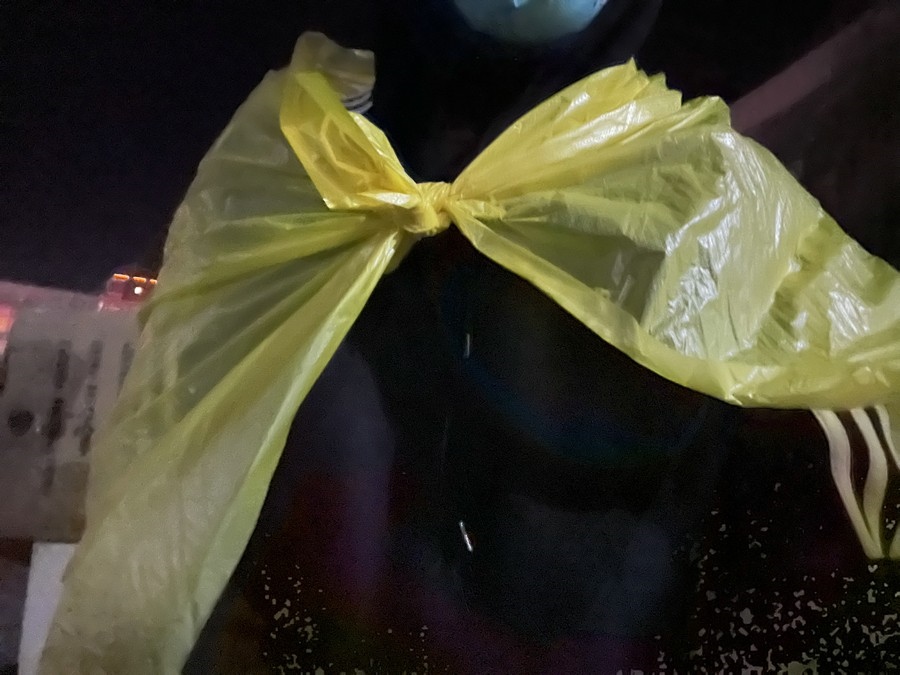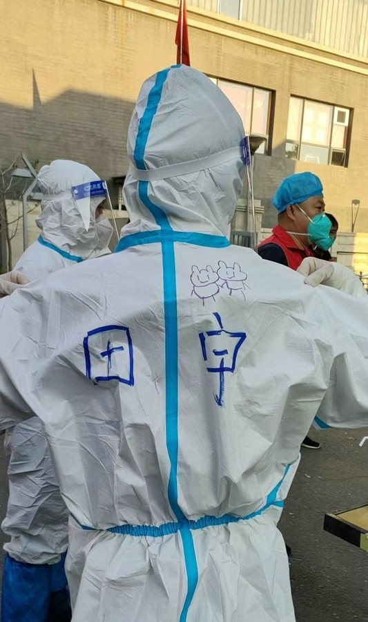 呼和浩特的深秋,夜涼如水,脫去防護服的她來不及換上厚衣服,她只好將未使用的垃圾袋披在身上保暖。