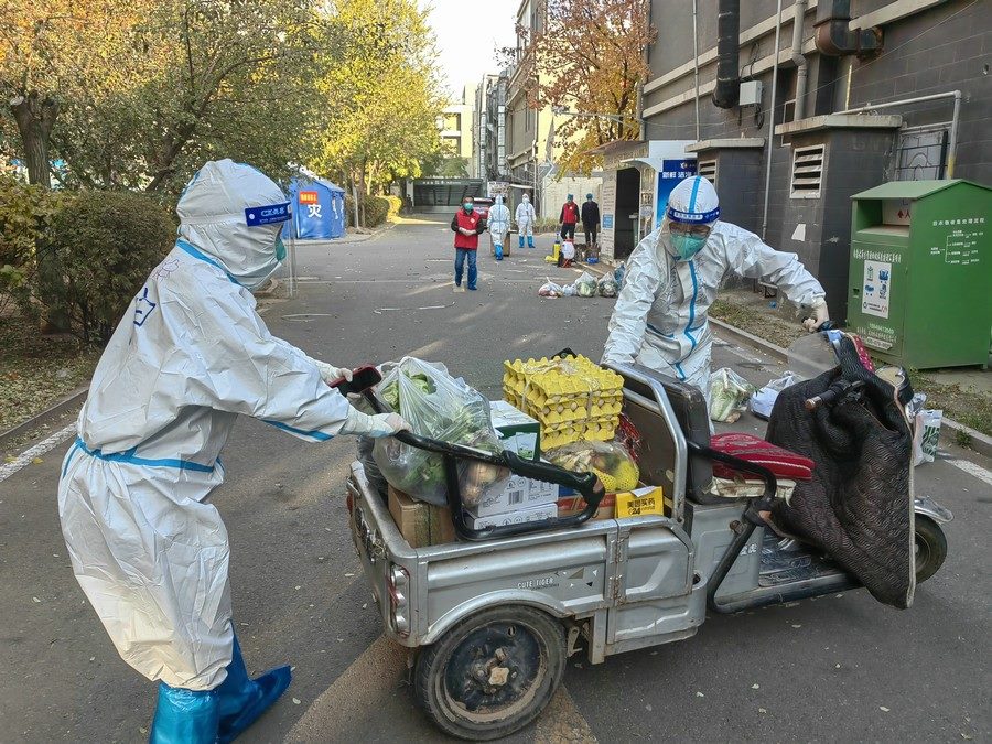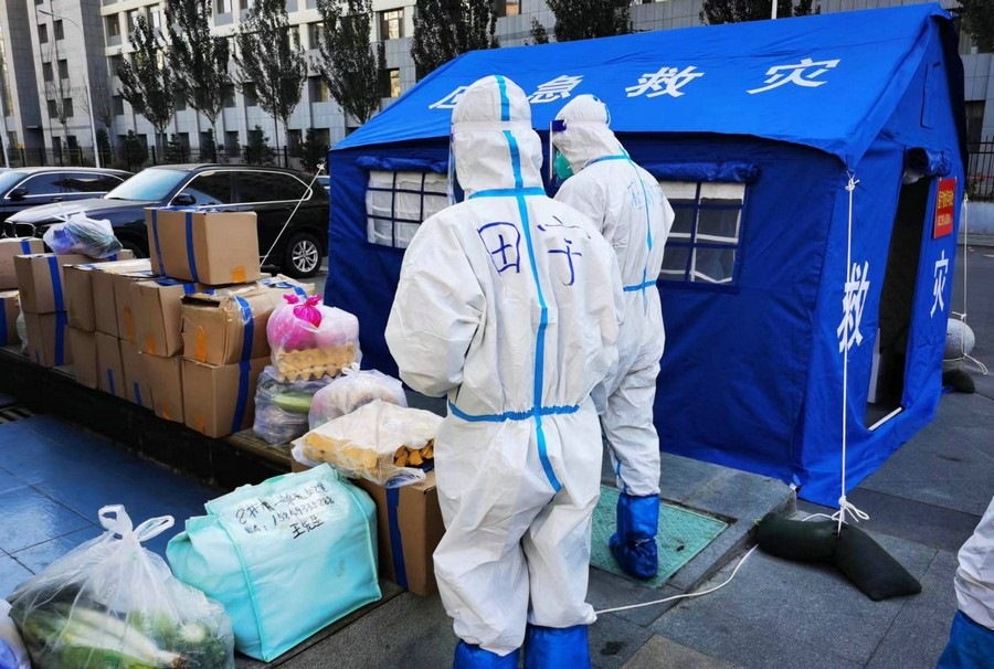 即使單元出現(xiàn)陽性病例,田宇依舊穿著防護服,佩戴好口罩,第一時間將物資運送到位。有時物資集中配送,田宇需要往返多次搬運大量的物資。有時鄰居填錯地址,還需要到別的居民樓幫忙找尋。但她從未有過一句怨言,面對鄰居們的感謝和贊揚,她總是憨厚地和大家說“不要客氣”。當鄰居們因為小區(qū)的封控管理或物資短缺產生焦慮或不滿時,她也會在第一時間解釋說明,疏導大家的情緒。