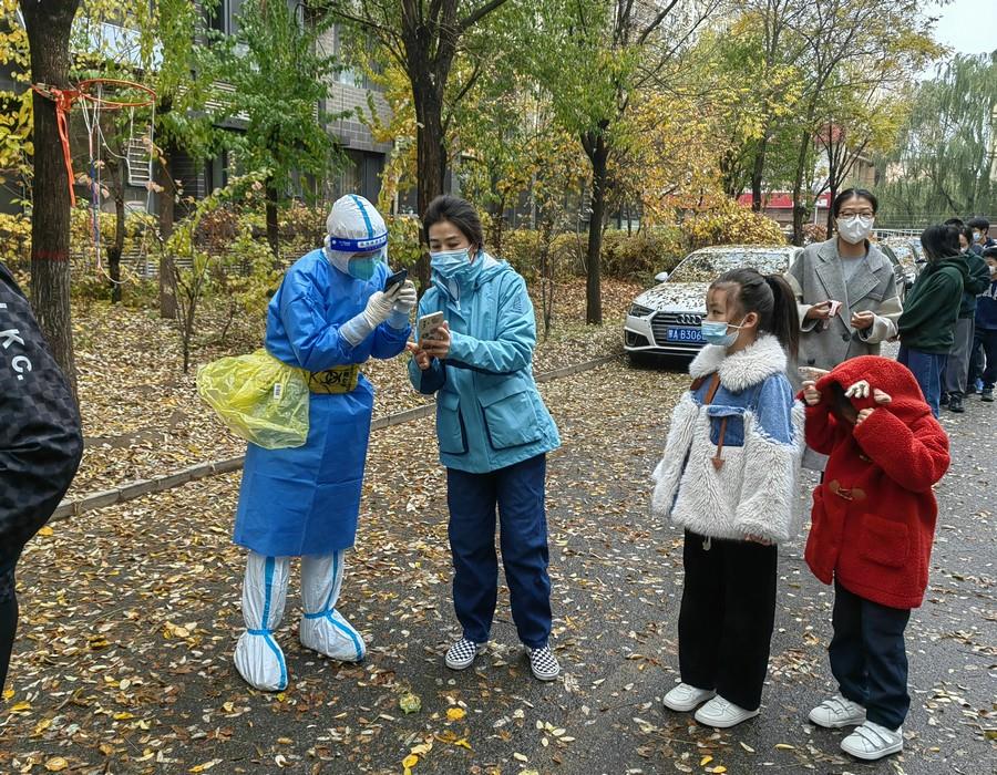 核酸檢測時,她認真檢查居民的抗原檢測結果,掃碼錄入信息,幫助使用手機不熟練或行動不便的老人快速完成檢測。