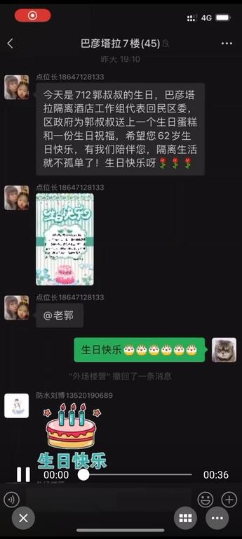 “60多年從來(lái)沒過過生日,沒想到在隔離酒店吃到了人生的第一個(gè)生日蛋糕!謝謝你們!”住在巴彥塔拉隔離酒店的郭連元對(duì)酒店的貼心服務(wù)感動(dòng)不已。