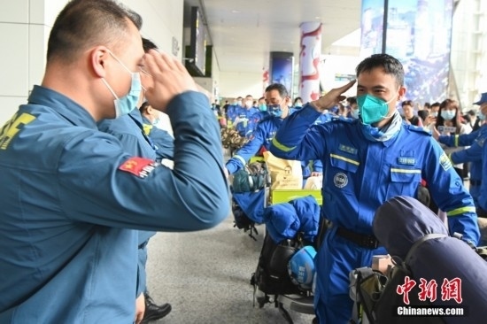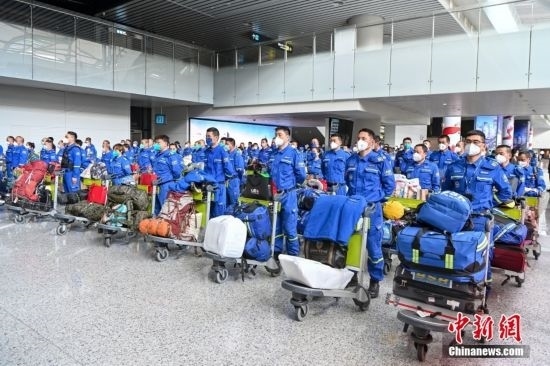 2月19日,廣東省廣州市,藍天救援隊赴土耳其隊員抵達廣州白云機場。當日,100余名藍天救援隊赴土耳其隊員搭乘CZ8066航班返抵廣州。中新社記者 陳驥旻 攝