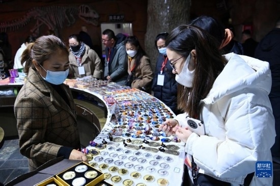 3月4日,游客在嘉峪關(guān)長(zhǎng)城第一墩景區(qū)選購(gòu)文創(chuàng)產(chǎn)品。
