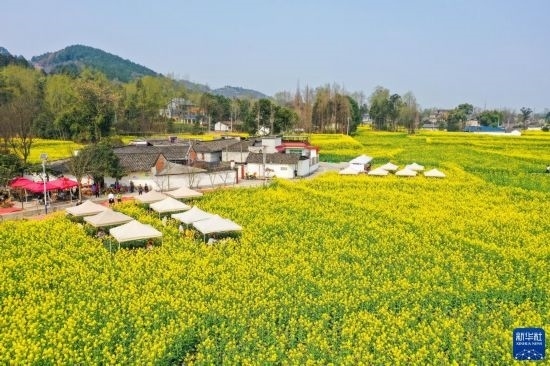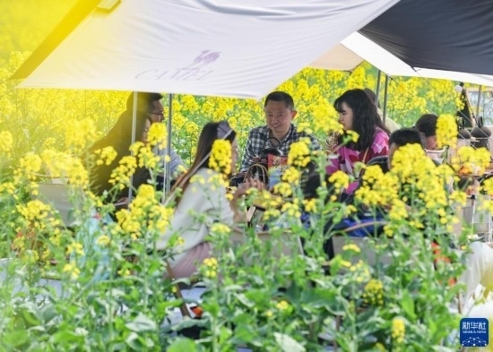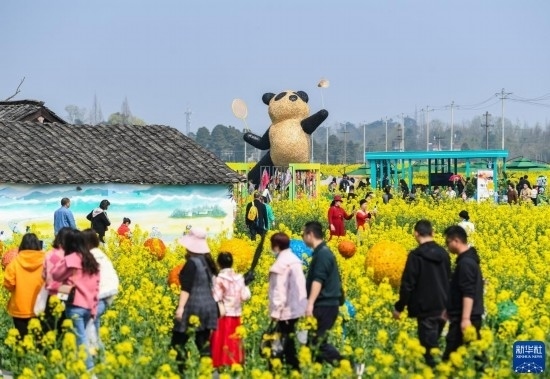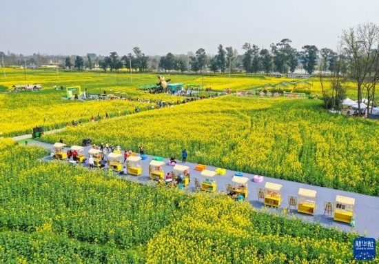 近日,位于四川成都崇州市的數(shù)萬(wàn)畝油菜花競(jìng)相綻放,吸引游客前來(lái)踏春觀光。