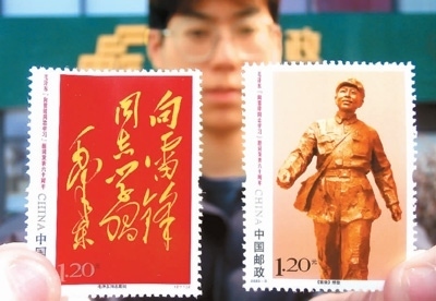 3月5日,中國郵政發(fā)行了一套名為《毛澤東“向雷鋒同志學習”題詞發(fā)表六十周年》的紀念郵票,其中一枚以金色雷鋒塑像為主體圖案。方寸間,雷鋒昂首挺胸,面含微笑,仿佛正闊步走在春風中。他的神情歡快溫暖,令人動容,讓人懷念。