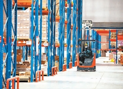 2月24日,在浙江省金華市金義綜合保稅區(qū)“代塔”京東倉(cāng)里,工作人員忙于理貨。胡肖飛攝(人民圖片)