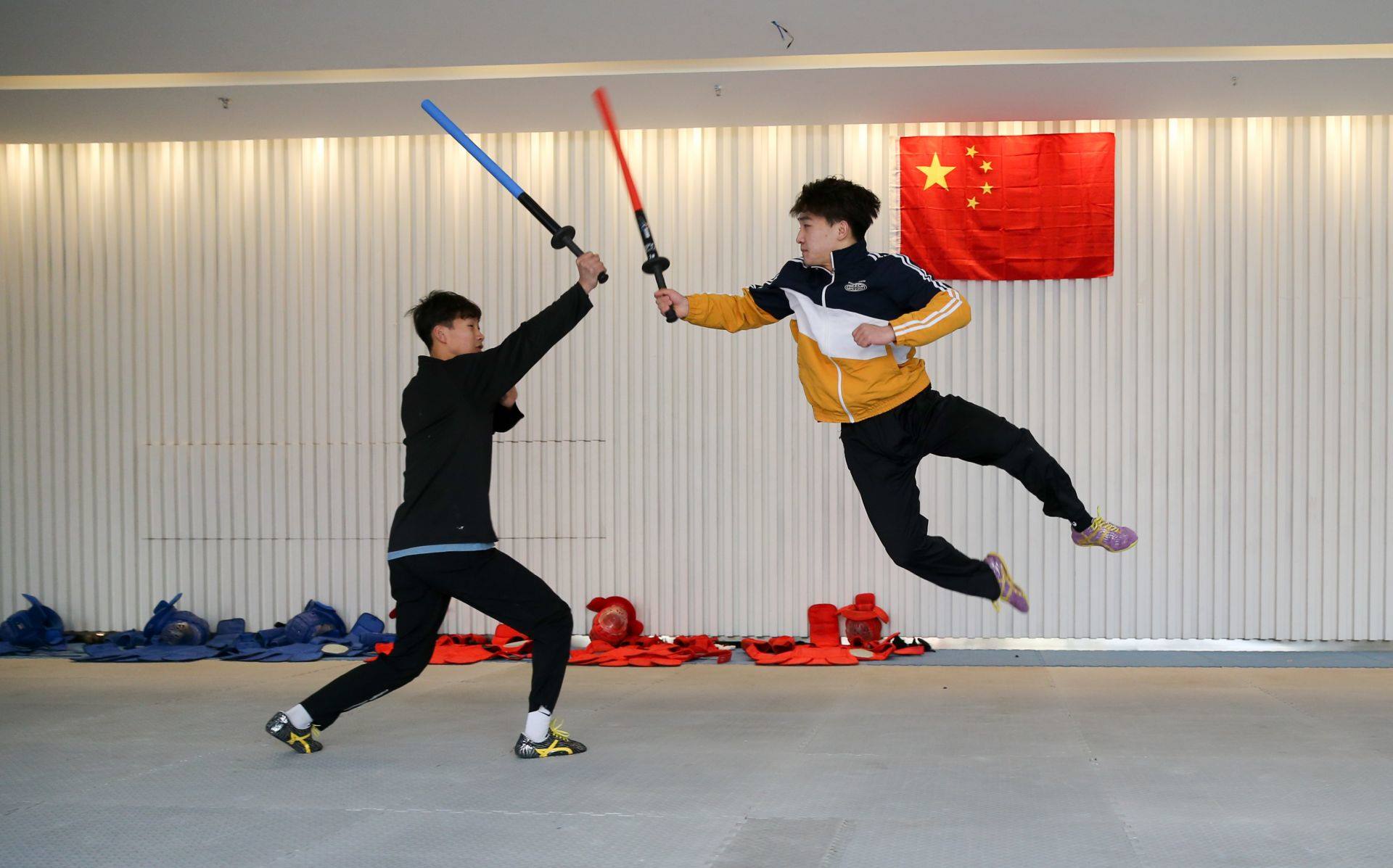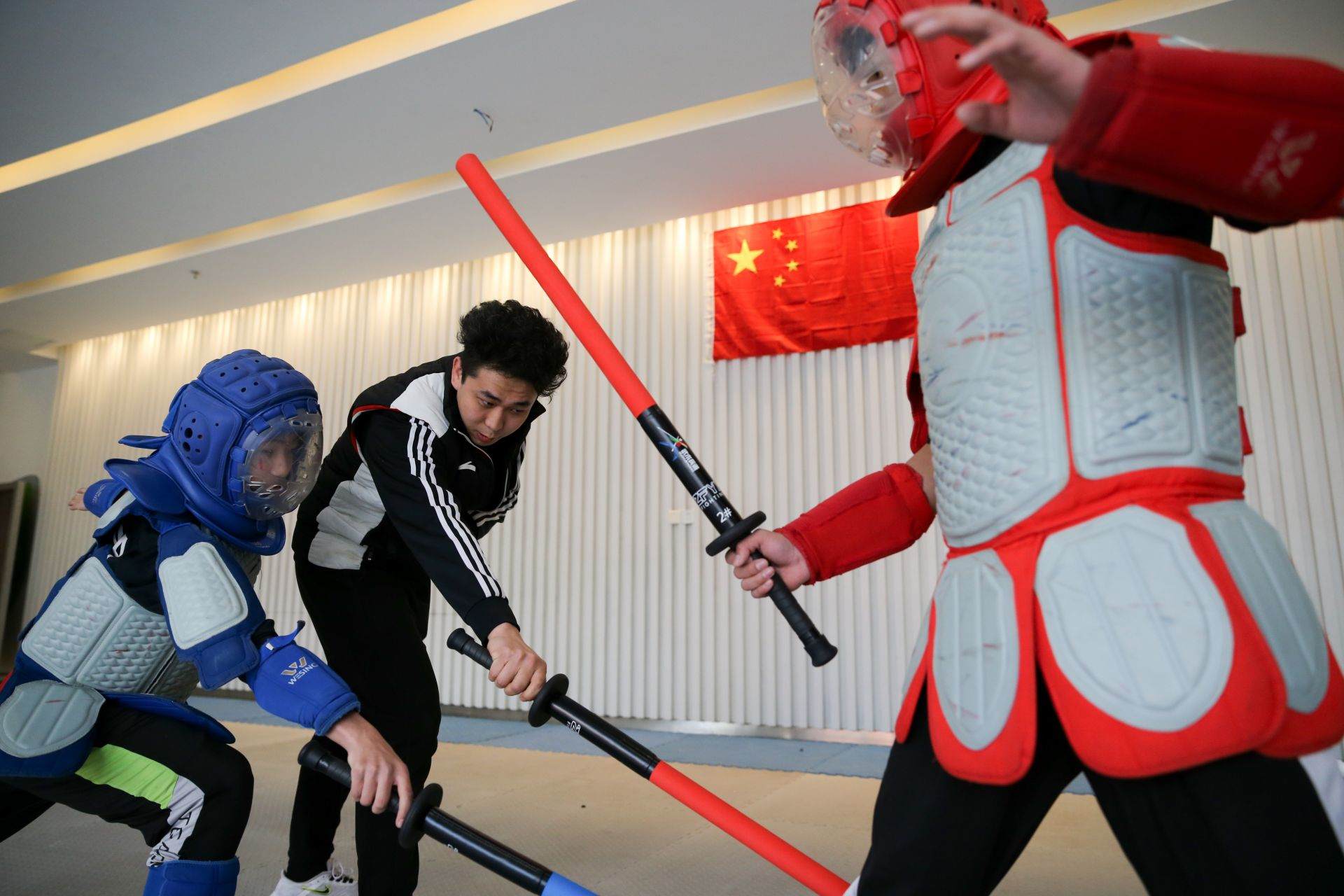 隊(duì)員手持一柄海綿包裹的短劍,時(shí)而閃躲騰挪,時(shí)而沖刺進(jìn)攻,動(dòng)作行云流水。一招一式間盡顯力量和速度之美,相互對(duì)抗擊打時(shí)發(fā)出“啪啪”的聲響更是令人熱血沸騰……如果說哪一項(xiàng)運(yùn)動(dòng)能夠滿足人們對(duì)俠客的終極幻想,非武術(shù)兵道莫屬。3月21日,為備戰(zhàn)全國(guó)武術(shù)兵道錦標(biāo)賽,內(nèi)蒙古唯一一支武術(shù)兵道隊(duì)在呼和浩特市體育運(yùn)動(dòng)學(xué)校展開訓(xùn)練。