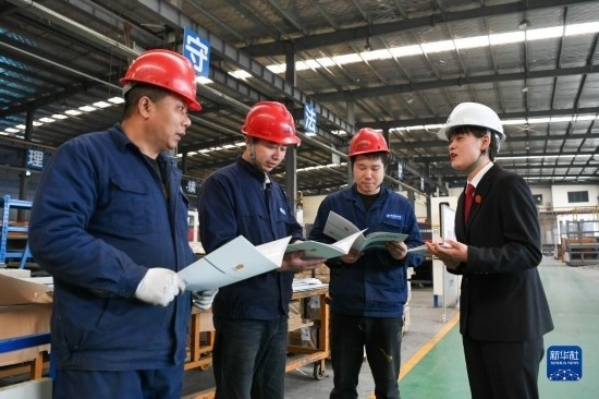 3月24日,鹽城市亭湖區(qū)人民法院的工作人員在轄區(qū)內(nèi)一工廠進行普法宣傳。