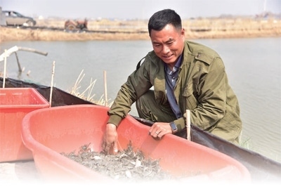 吉林省前郭爾羅斯蒙古族自治縣高級農(nóng)技師劉雙在補充蟹苗。王國彬攝