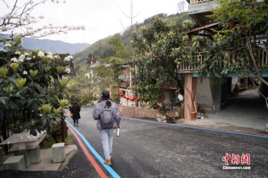 位于半山腰的石椅村也被稱(chēng)為“云朵上的山寨”。此前,村里的交通不算便利,升級(jí)改造后的道路拓寬到10米左右,不僅路面鋪上了瀝青,還劃出了彩色步道,游客漫步其中,仿佛置身天然氧吧。