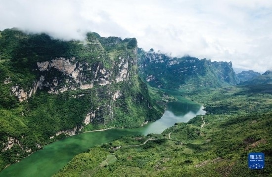 貴州省北盤江大峽谷國家濕地公園風(fēng)貌(2018年8月7日攝,無人機照片)。