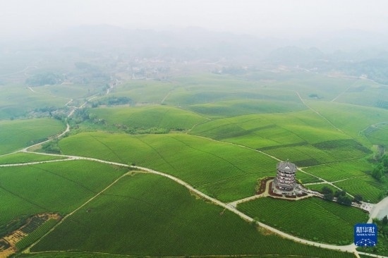 2021年4月12日拍攝的貴州省湄潭縣的“萬畝茶海”風(fēng)光(無人機照片)。