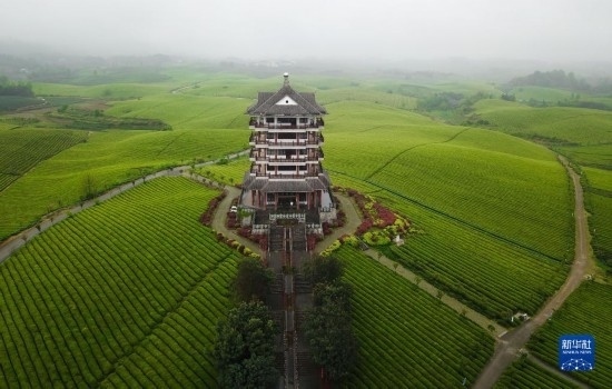 這是貴州省湄潭縣的“萬畝茶?!憋L(fēng)光(無人機照片,2021年4月12日攝)。