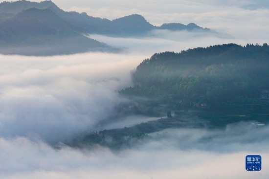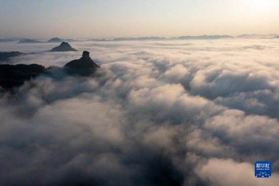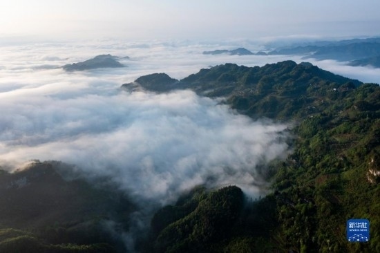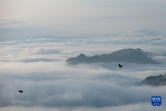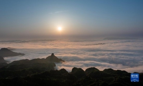 當日,位于重慶市南川區(qū)的世界自然遺產地金佛山雨后放晴,山間升騰起的水汽匯聚成云海在山巒之間流淌,美不勝收。