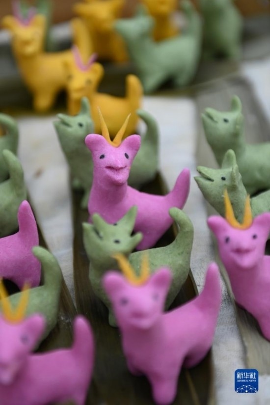 5月4日拍攝的村民制作的米塑“立夏狗”。