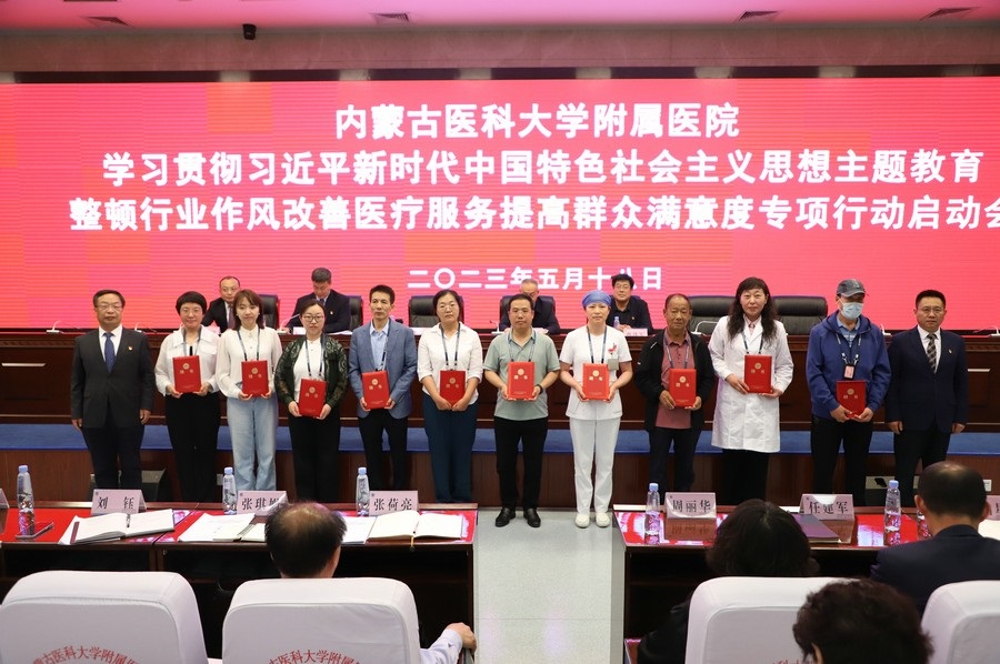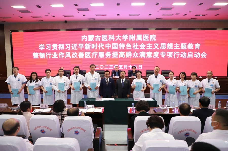 啟動(dòng)會(huì)上,內(nèi)蒙古醫(yī)科大學(xué)黨委委員、附屬醫(yī)院黨委書(shū)記張立東,醫(yī)院黨委委員、紀(jì)委書(shū)記劉玉龍與專(zhuān)項(xiàng)行動(dòng)工作小組組長(zhǎng)簽訂責(zé)任狀,并為10名社會(huì)監(jiān)督員頒發(fā)聘書(shū)。