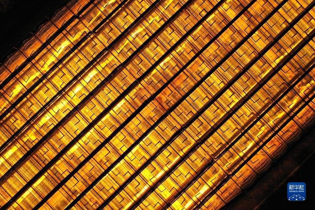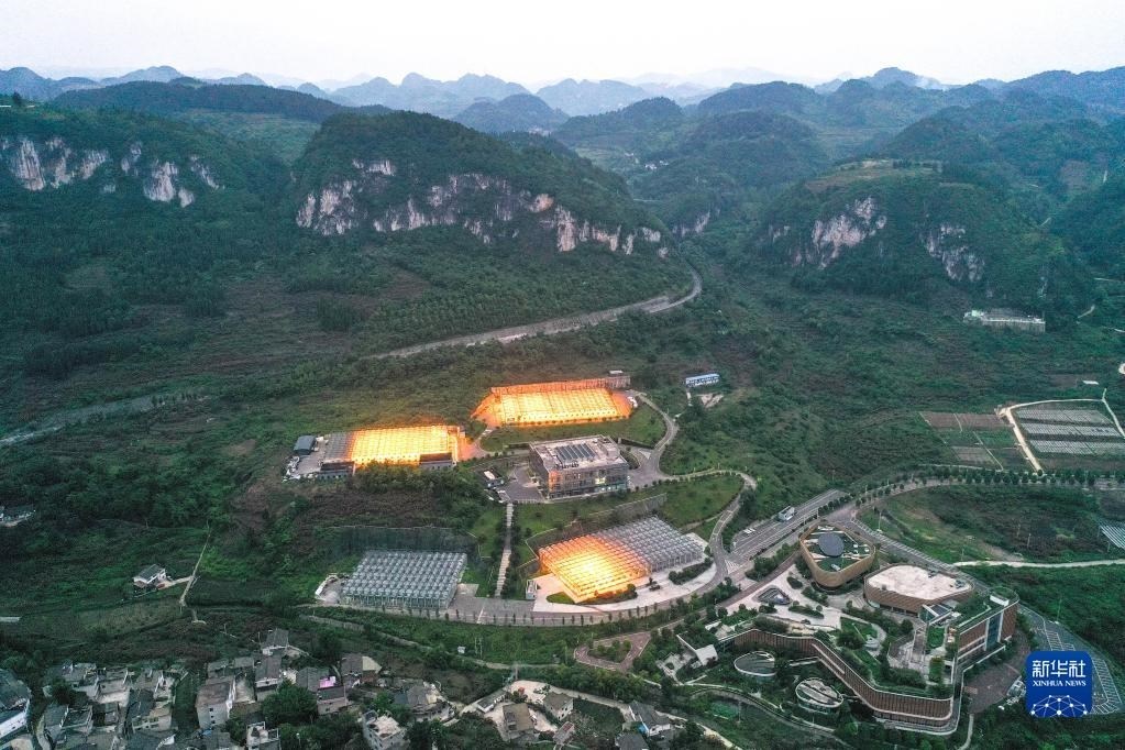 這是5月23日拍攝的貴陽市開陽縣南江蔬菜良種繁育中心育苗大棚夜間補(bǔ)光場(chǎng)景(無人機(jī)照片)。補(bǔ)光更有利于種苗生長,縮短育苗周期。
