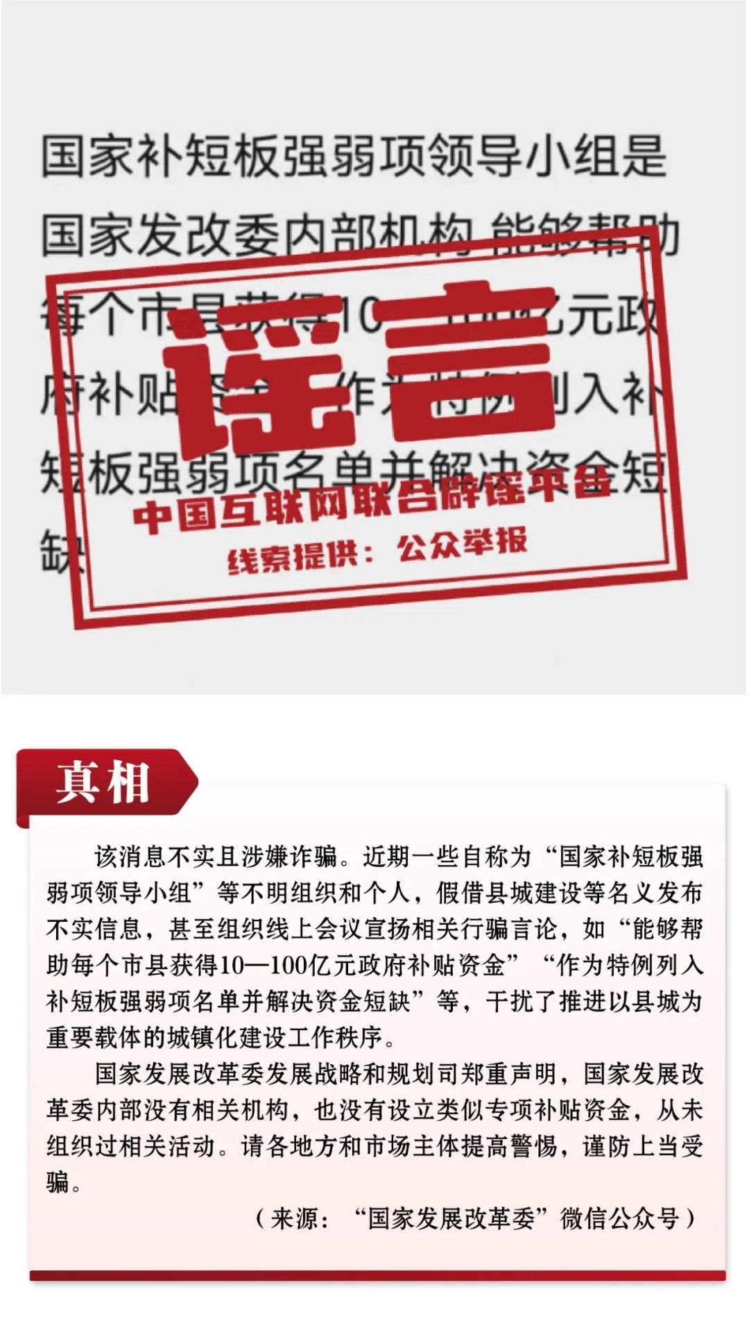 有“國家補短板強弱項領導小組”并設立專項補貼?
