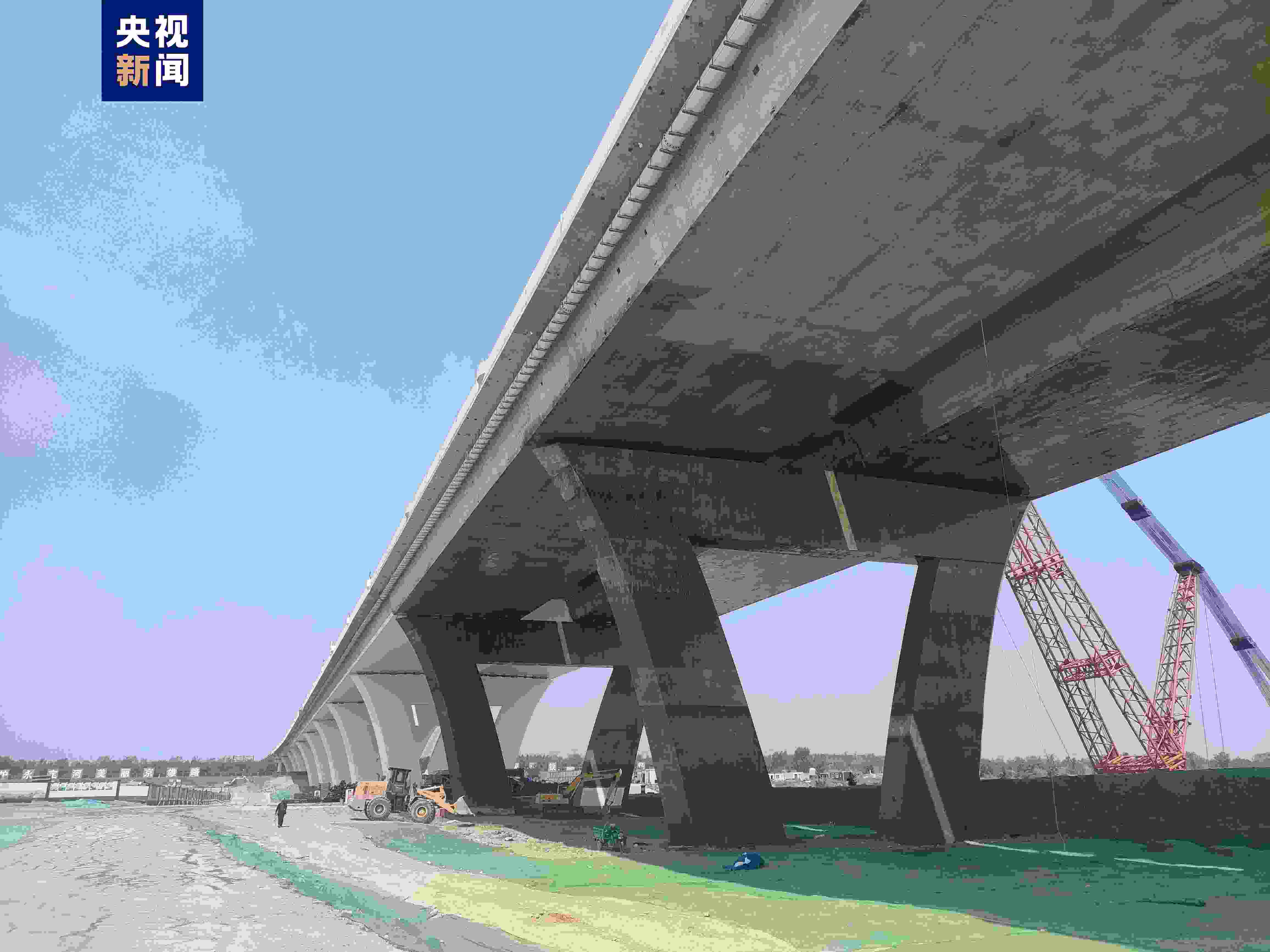 京雄大橋位于永定河與京雄高速“交匯點(diǎn)”,全長1.62公里,其中東引橋410米、西引橋690米、主橋520米,主拱跨度達(dá)300米。大橋主梁寬度達(dá)48米,未來將承載京雄高速雙向八車道的車流。