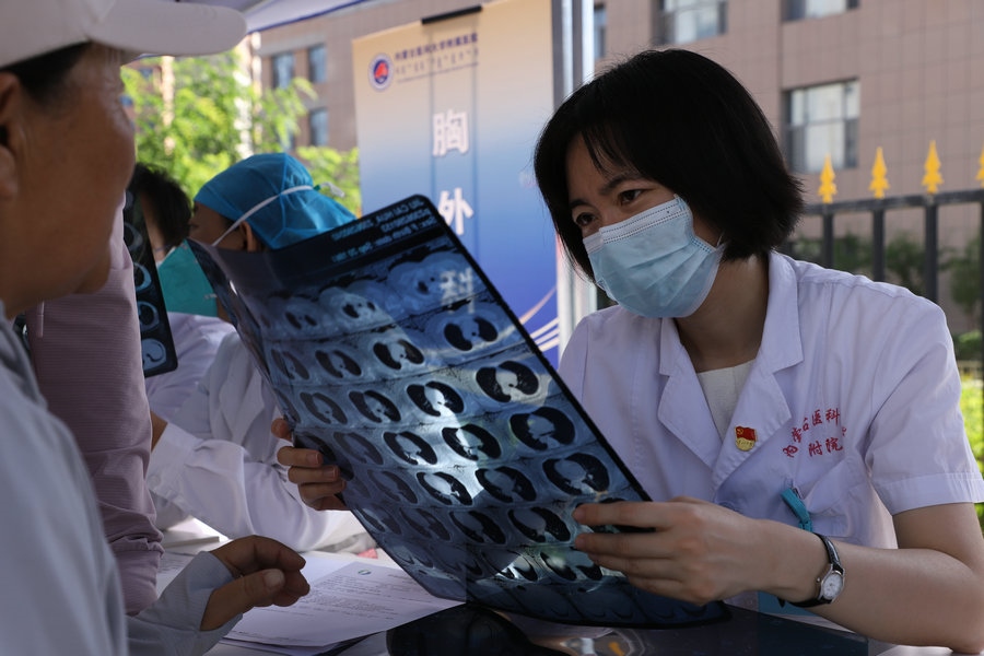 專家們?yōu)榍皝韱栐\的群眾,提供免費的咨詢檢查診療服務(wù),宣傳健康知識,提高群眾對常見病、慢性病的防控意識,以實實在在的方式為老百姓看病就醫(yī)解決實際問題。 謝凱隆 攝影報道