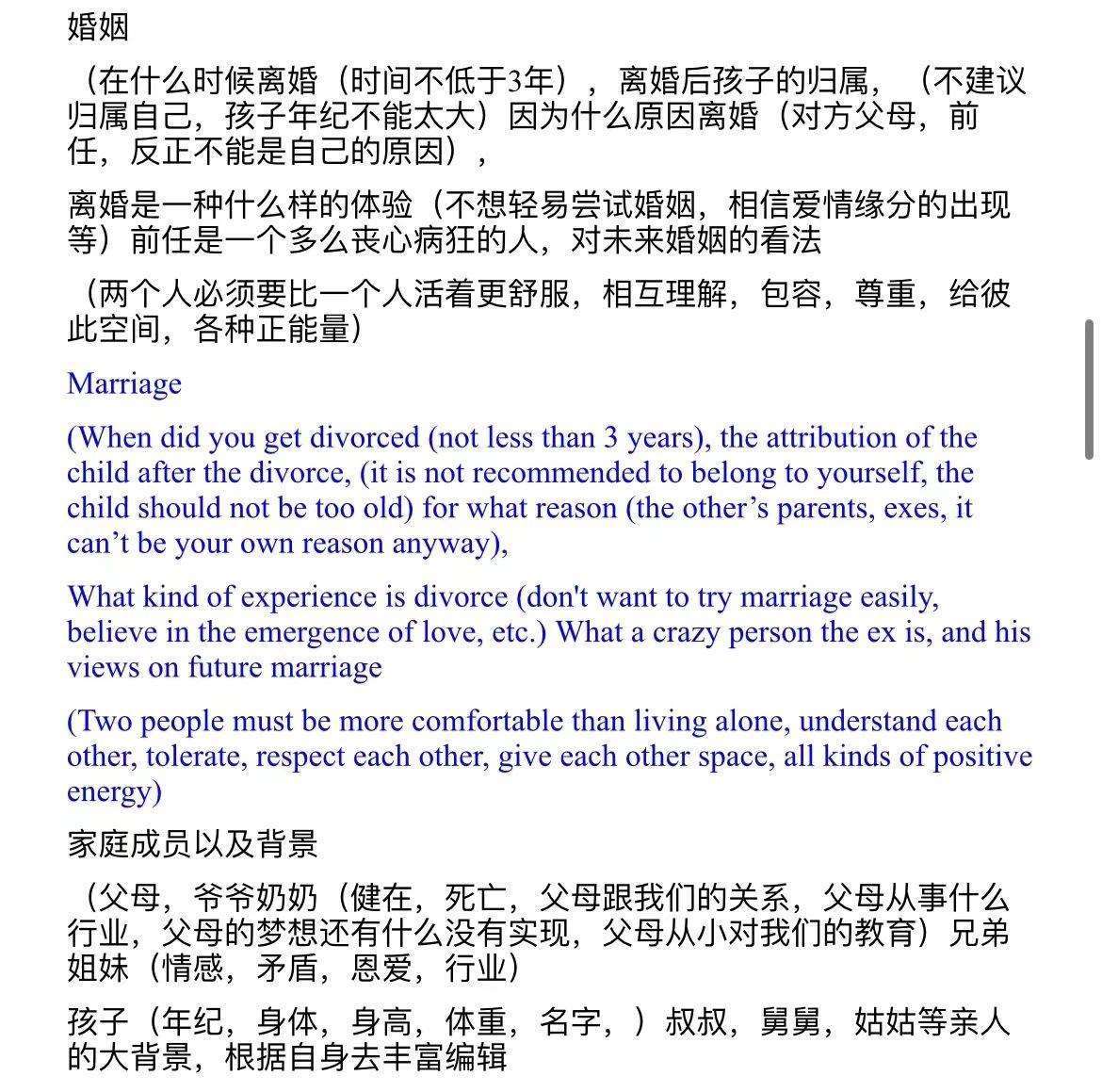 在年齡、身高等基本信息之外,詐騙“專(zhuān)業(yè)知識(shí)”文檔還要求團(tuán)伙人員將祖籍、才藝、經(jīng)歷、生活故事等細(xì)節(jié)設(shè)置好,其中需要塑造一個(gè)“近親”的形象,可以是叔叔、阿姨、舅舅等等。